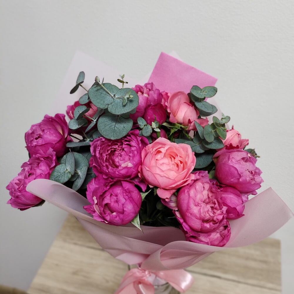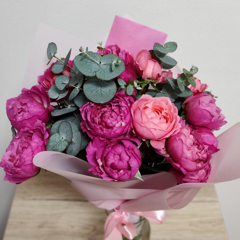 peonia rosa spray - 5 pz eucalipto - 6 pz