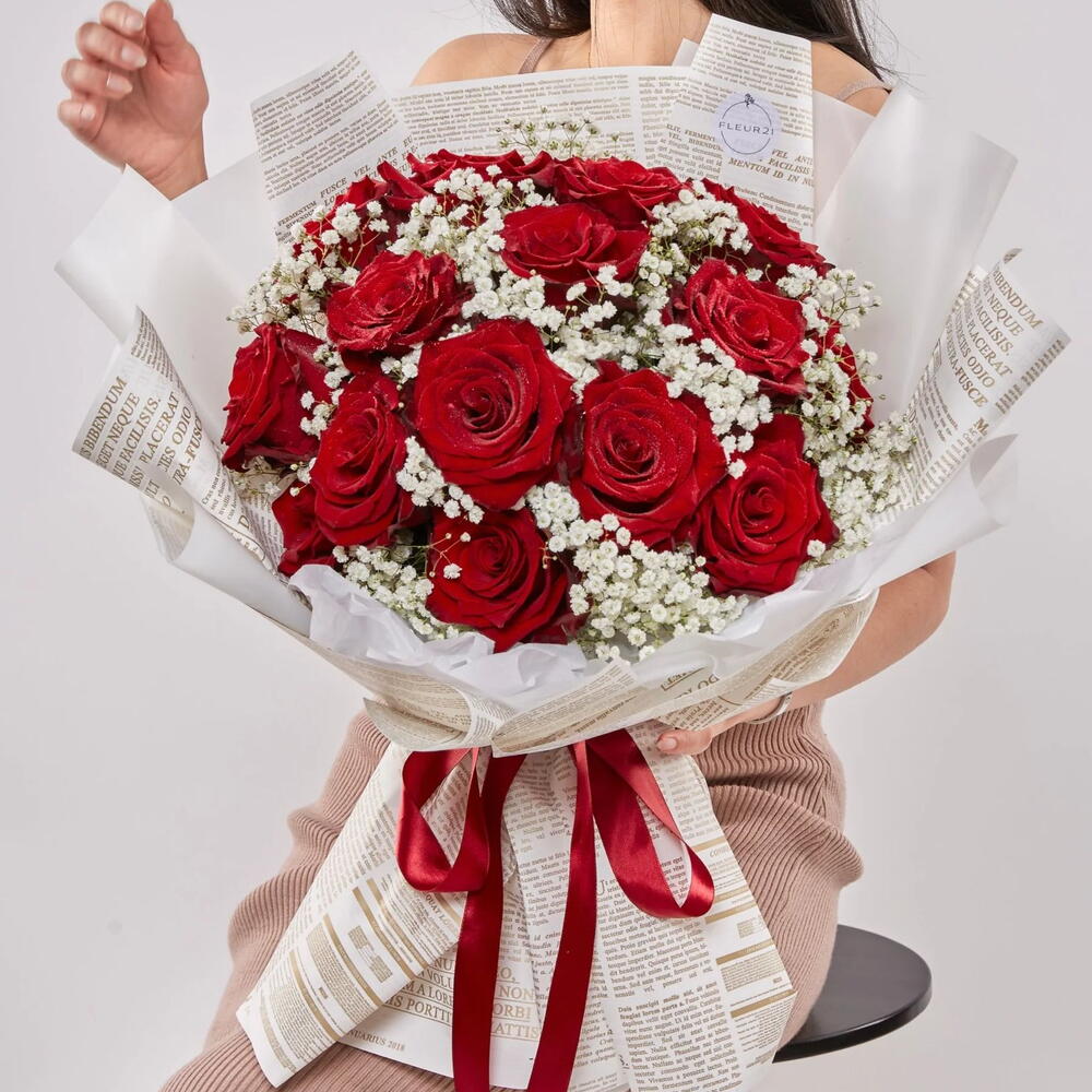 carta da regalo - 1 pz white gypsophilia - 8 pz equador red roses - 15 pz