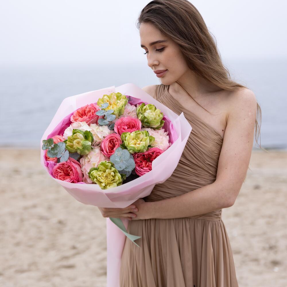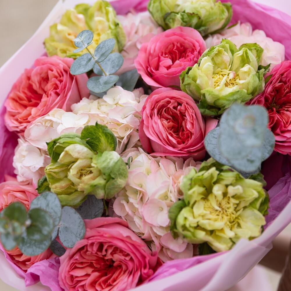Vivi la bellezza dell'amore con il nostro Bouquet Romantico. Caratterizzato da una splendida composizione di rose vegetali, rose da giardino pink expression, ortensie ed eucalipto, questo bouquet è la perfetta espressione di romanticismo e affetto. Delicatamente raccolti a mano e sapientemente disposti, questi fiori lasceranno sicuramente un'impressione duratura sulla persona amata. Lascia che il nostro bouquet sia il simbolo perfetto del tuo amore.