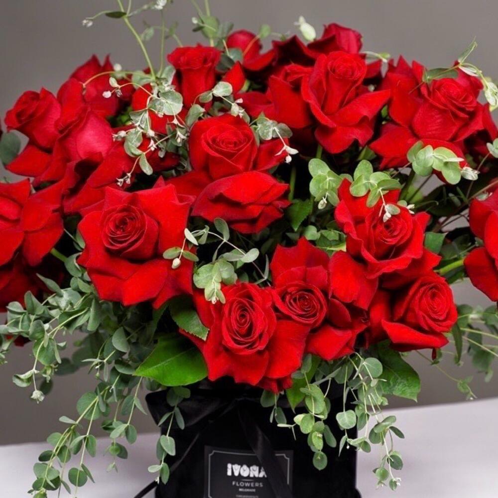 Eucalipto - 8 pz Scatola - 1 pz nastro di raso - 1 pz roses - 25 pz