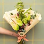 Eucalipto - 7 pz Viburno - 5 pz anthurium green - 1 pz růže ekvádorská mondial pink - 3 pz orchidej cymbidium - 7 pz karafiát trsových zelený - 2 pz