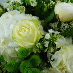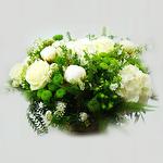 Inserted flower basket 5 Peonies 4 Hydrangeas 7 Phlox 8 Daisys 6 Hypericums 10 Carnations 6 Roses Mixed Green ( Eucalyptus / Olive green ) Color: white with green
