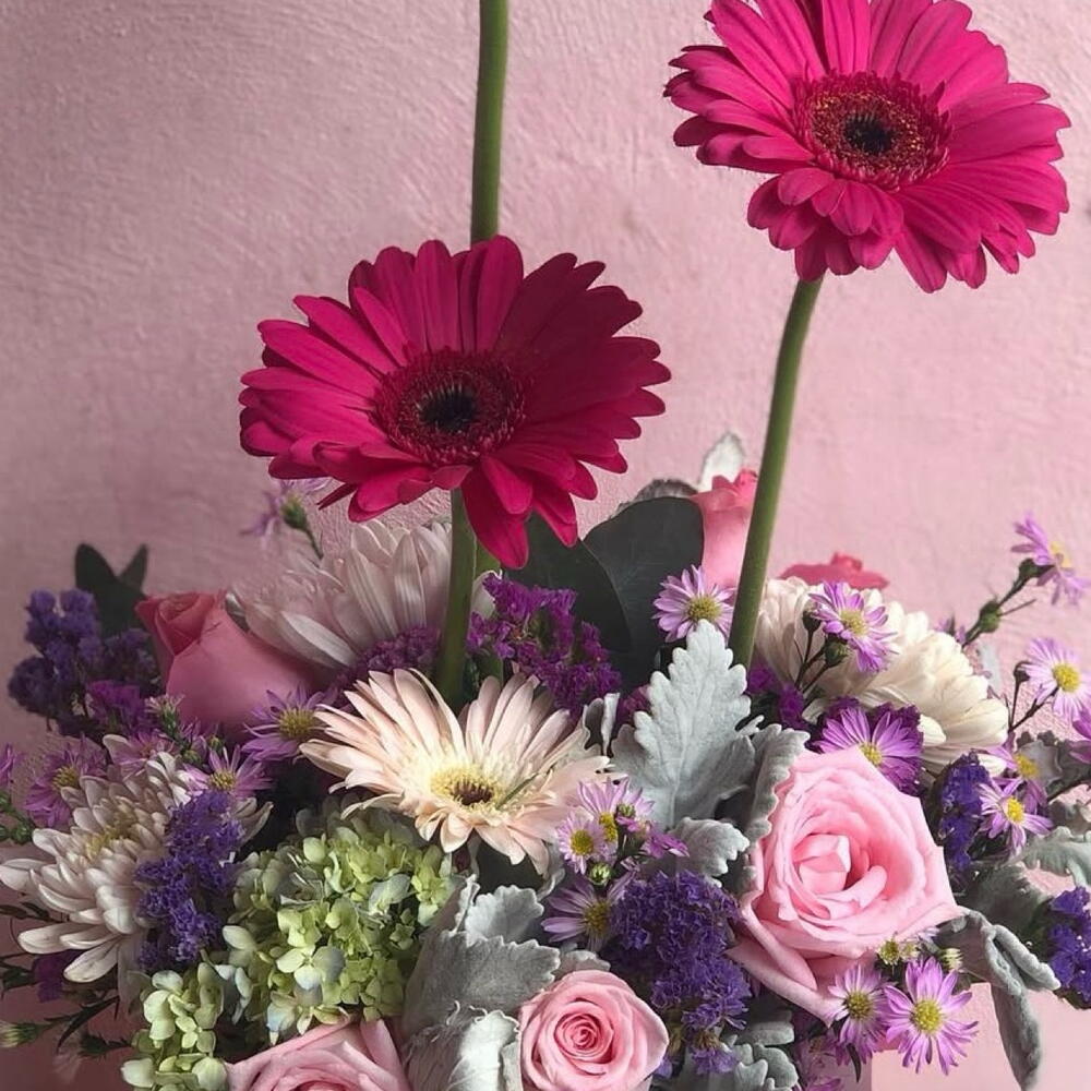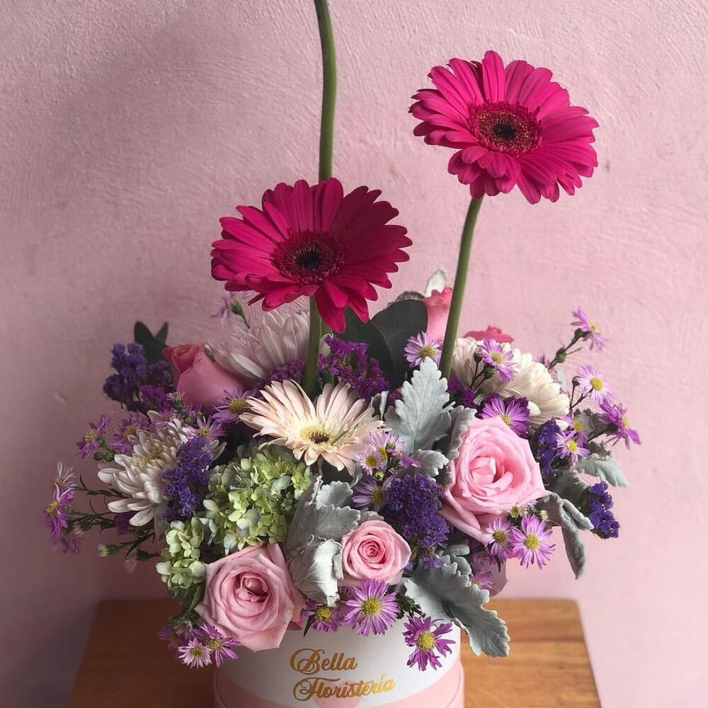 ortensia - 3 pz Gerbera - 5 pz rosas - 6 pz roxanas - 4 pz follajes finos - 3 pz