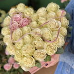 Sweet Ivory Heart is a delicate and elegant floral arrangement designed in a heart-shaped box, featuring velvety ivory roses complemented by soft pink spray roses. The gentle contrast between the creamy ivory tones and the romantic blush pink creates a refined and feminine composition. A soft satin ribbon adds an extra touch of elegance and romance. Perfect for: • anniversaries • romantic surprises • love declarations • elegant gifts A floral arrangement that expresses tenderness, sophistication, and genuine affection. Flowers: premium ivory roses, pink spray roses, decorative greenery.