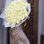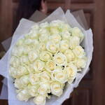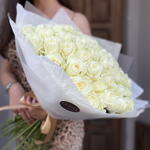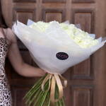 bouquet of white roses, packed in high-quality floral film tied with satin ribbon Free greetings card for every order