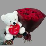 Set Bouquet 15 rose rosse più orsetto con cuore