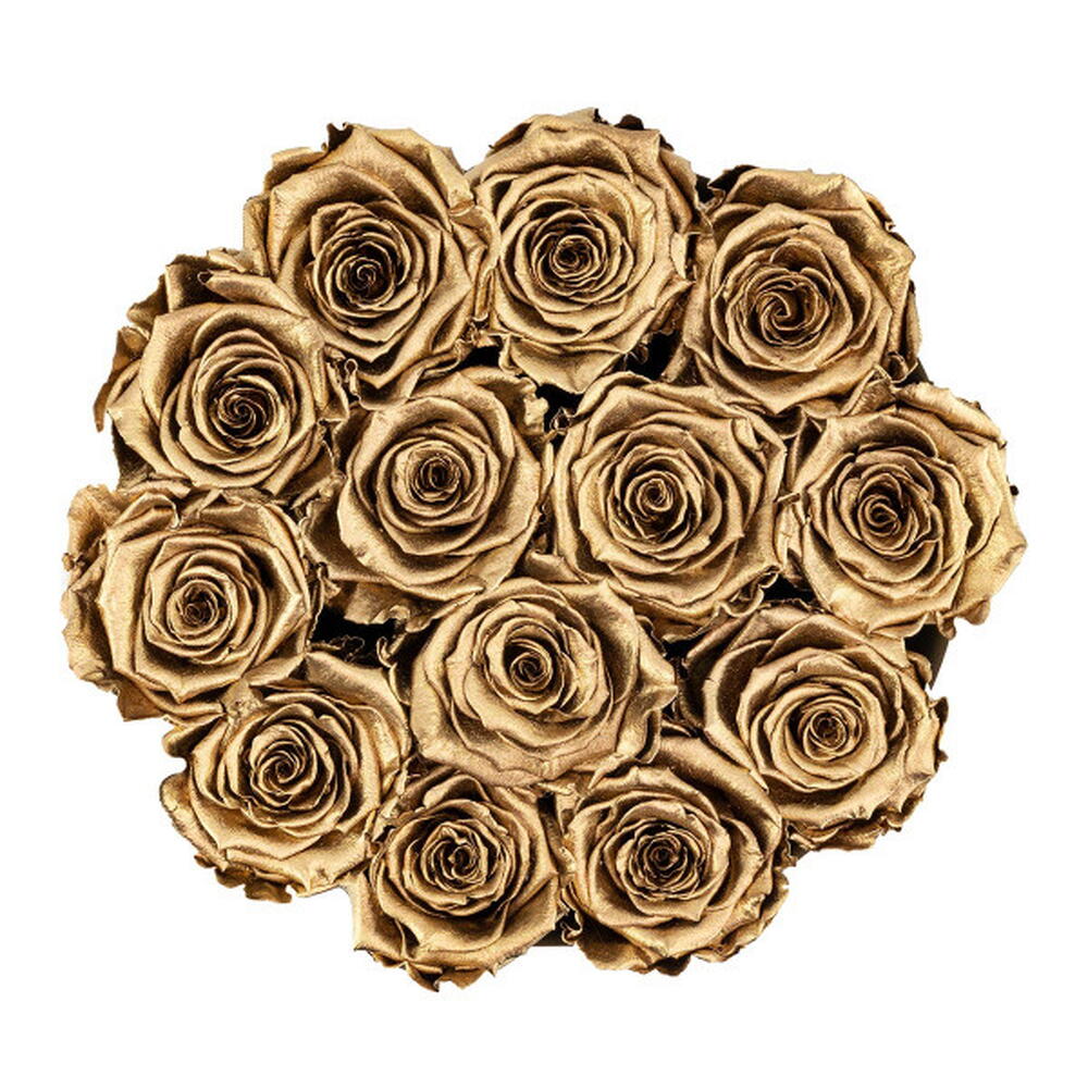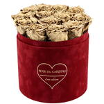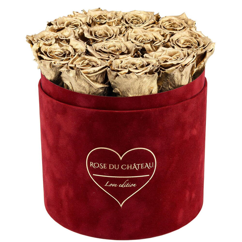Rose Eterne Dorate in Flowerbox Rosso per regalo Rose du Chateau