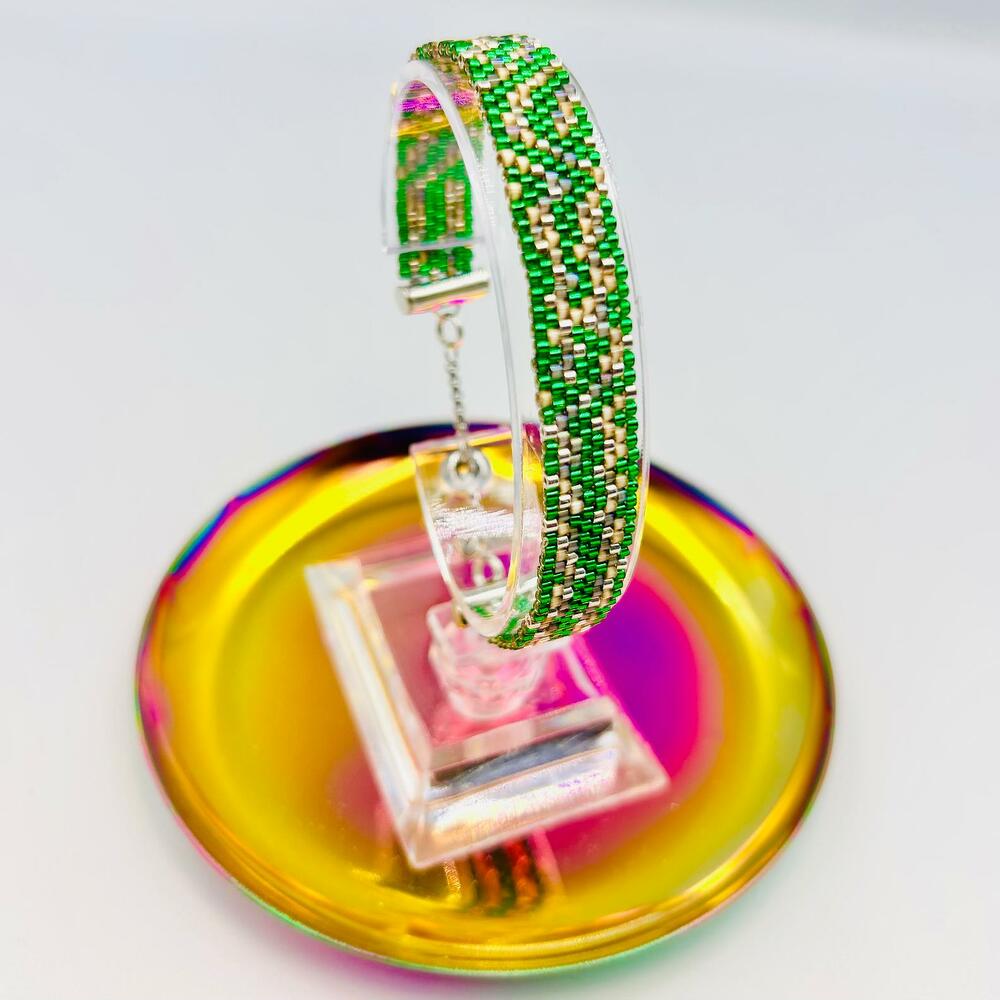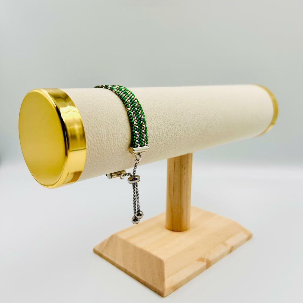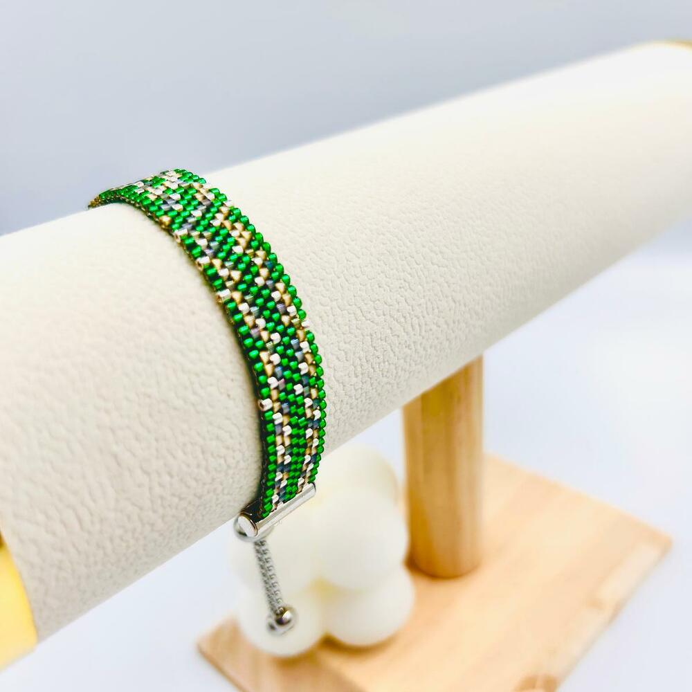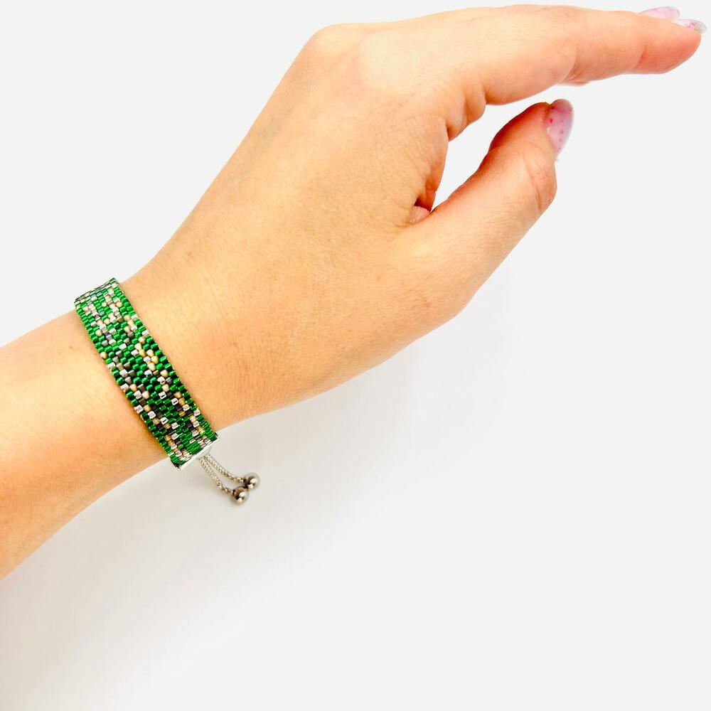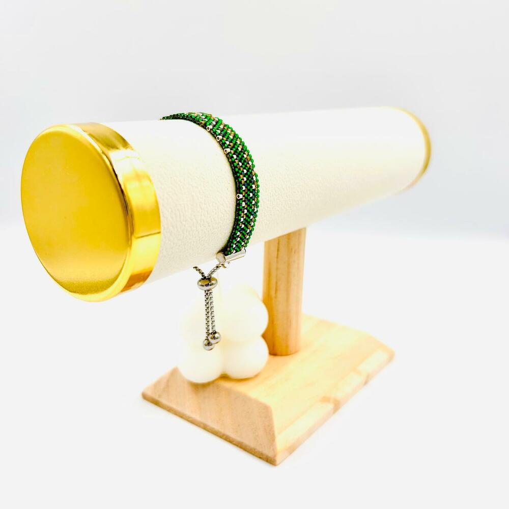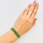 Bellissimo braccialetto verde fatto a mano con perline di raso :) Può essere realizzato in diverse colorazioni :) E con diversi tipi di chiusura :) Le misure sono indicative :) ogni braccialetto viene realizzato secondo le misure individuali del cliente :)