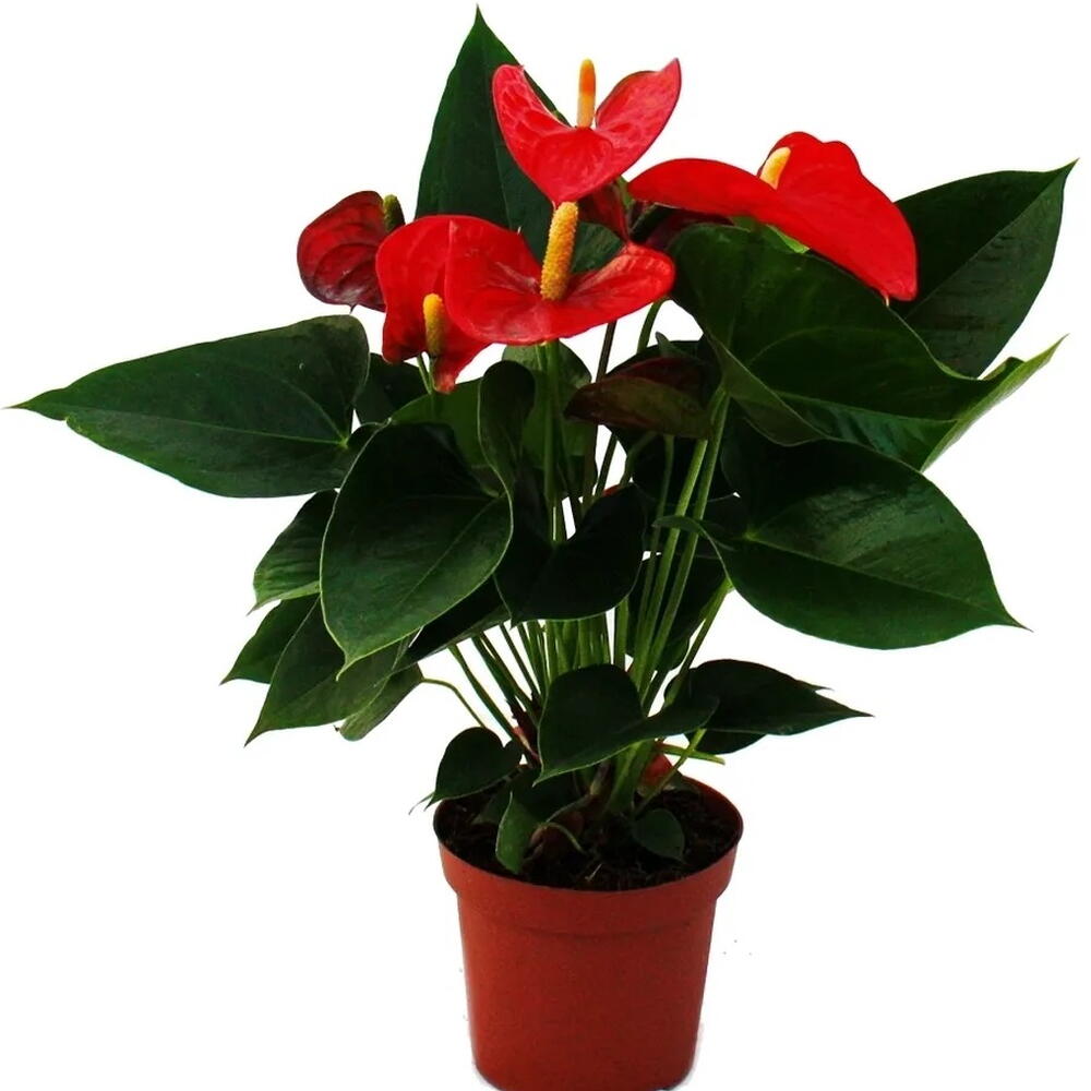 L'anthurium rosso (Anthurium) è una pianta in vaso d'effetto con infiorescenze a forma di cuore, cerose. Richiede una posizione luminosa con luce diffusa (senza sole diretto), una temperatura di 20–28°C e un'elevata umidità dell'aria. Il substrato dovrebbe essere leggero, drenante e leggermente acido (pH 5,5), e l'annaffiatura moderata – il substrato deve essere leggermente umido, ma non inzuppato.