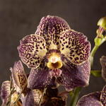 Ванда (лат. Vanda) - это многолетнее травянистое растение семейства Орхидные. Орхидея Ванда включает в себя около 53 эпифитных (растущих на деревьях), литофитных (растущих на камнях) и наземных видов, широко распространенных на территории Юго-Западной Азии, Австралии и Индонезии. Комнатная Орхидея Ванда представляет собой изящное домашнее растение с цилиндрическим стеблем, на котором расположены кожистые плотные темно-зеленые листья. У Орхидей довольно хорошо развита корневая система, а Ванда имеет воздушные серо-зеленые корни, с помощью которых растение в естественных условиях обитания получает необходимое количество питательных веществ, для нормального роста и развития. Орхидея Ванда посажена в бокал.