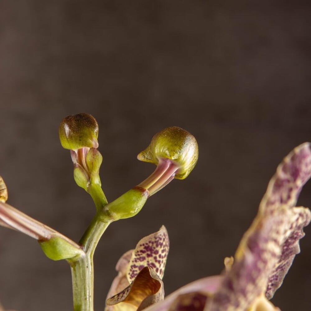 Pianta D'Appartamento Orchidea Wanda in un bicchiere di champagne nero e giallo