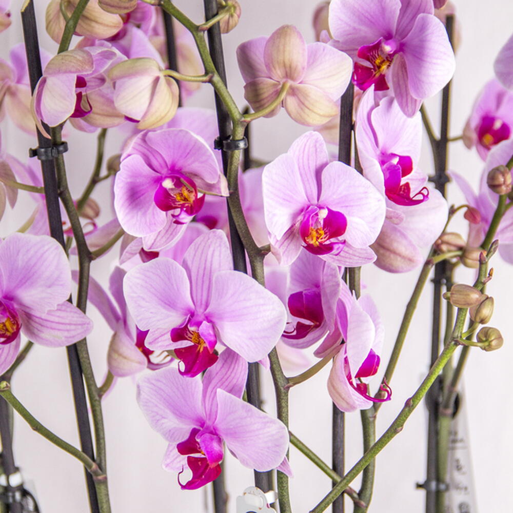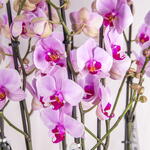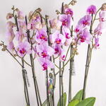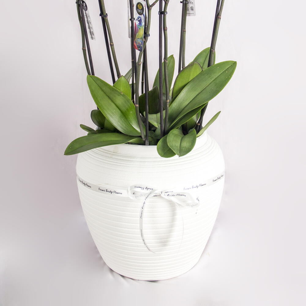 Elevate your space with the timeless elegance of this pink Phalaenopsis orchid. Featuring multiple stems of delicate blooms, this orchid is presented in a modern white ceramic pot, making it a perfect centerpiece or gift.