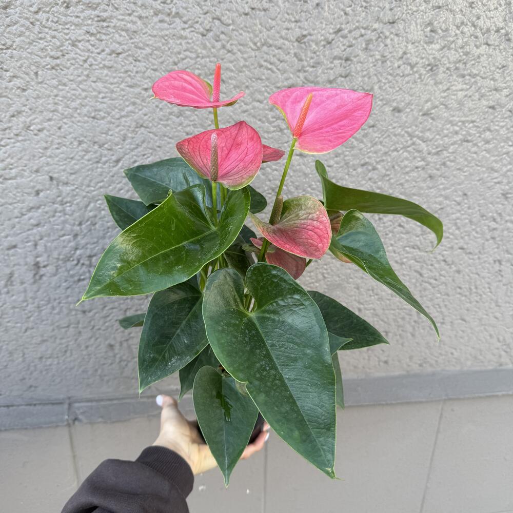 Anturio rosa in coprivaso rosa in ceramica
