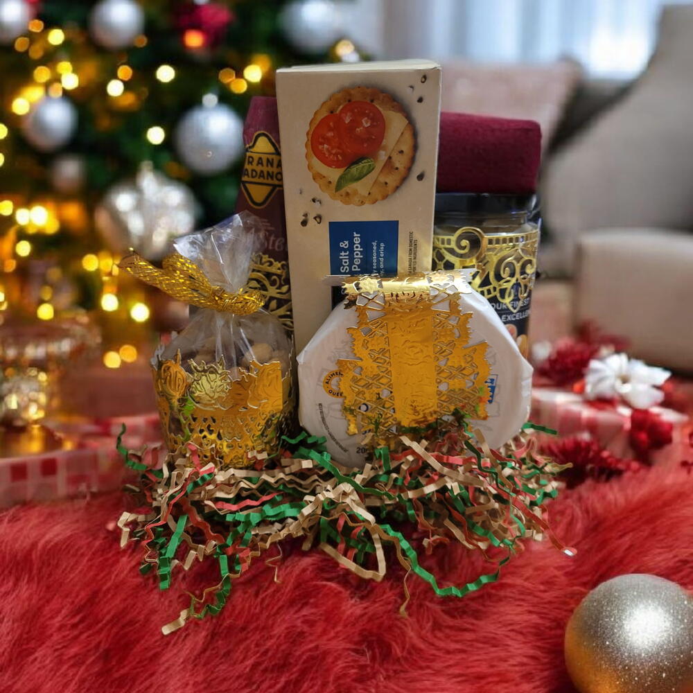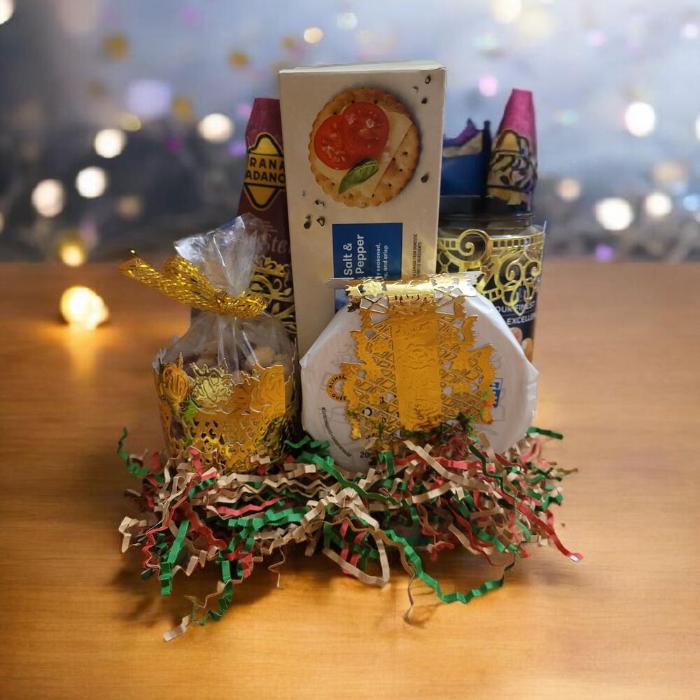 Gourmet Indulgence Gift Set A beautifully curated collection treats and a cozy warm drinks, thoughtfully arranged to create a moment of pure enjoyment. Each item is chosen for its exceptional quality and elegant presentation, offering a blend of comfort, luxury, and a little surprise in every bite and sip. Perfect for holidays, thank-yous, hostess gifts, or anyone who deserves something special. Ready to gift and guaranteed to make someone smile.