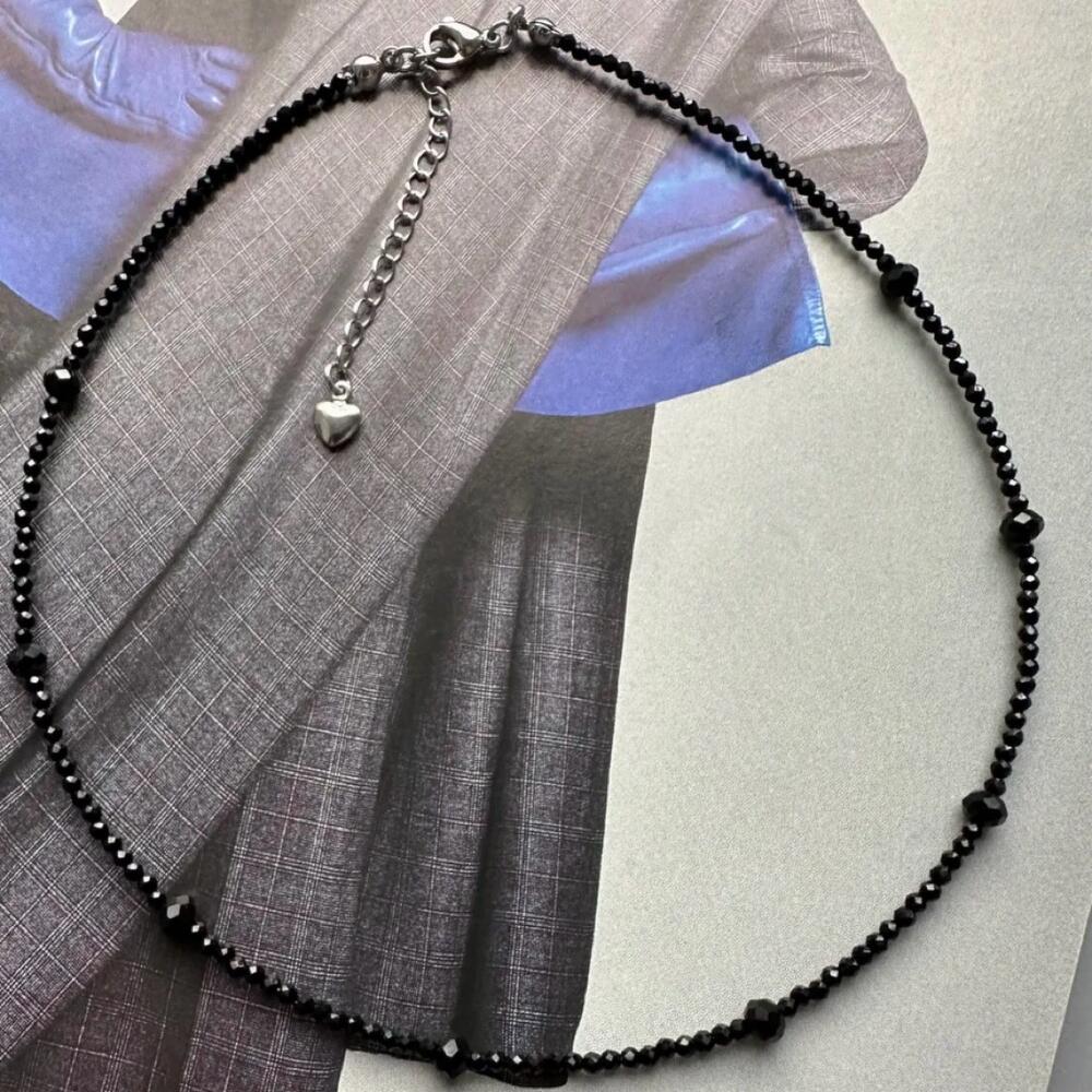 Handcrafted choker made of black small and large beads with a high-quality stainless steel clasp.