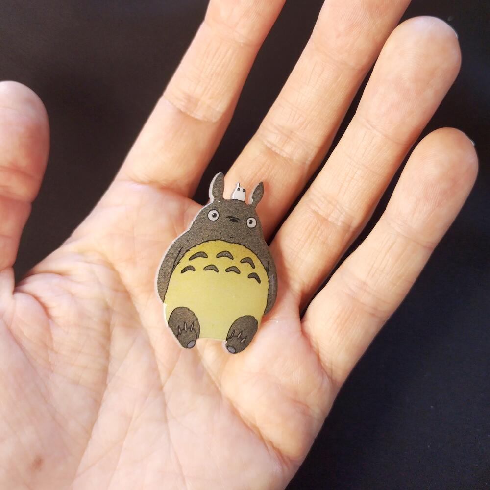 Badge in shape of japan cartoon character - Totoro, covered with epoxy resin.
