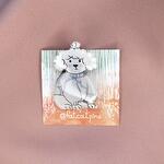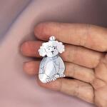 Brooch in the form of a small white dog according to the authors sketch. The material is recycled plastic, coated with epoxy resin. The size is 40 by 26 mm.