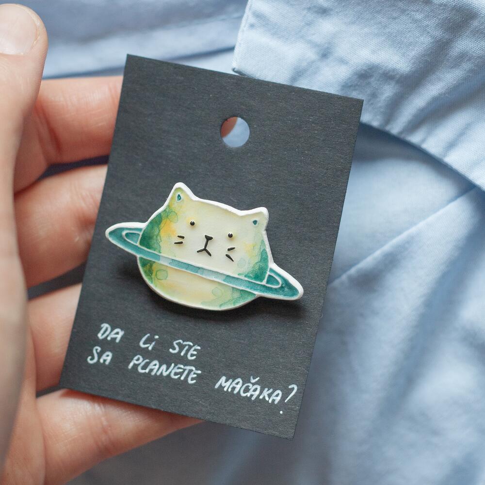 Ceramic Cat Planet Brooch