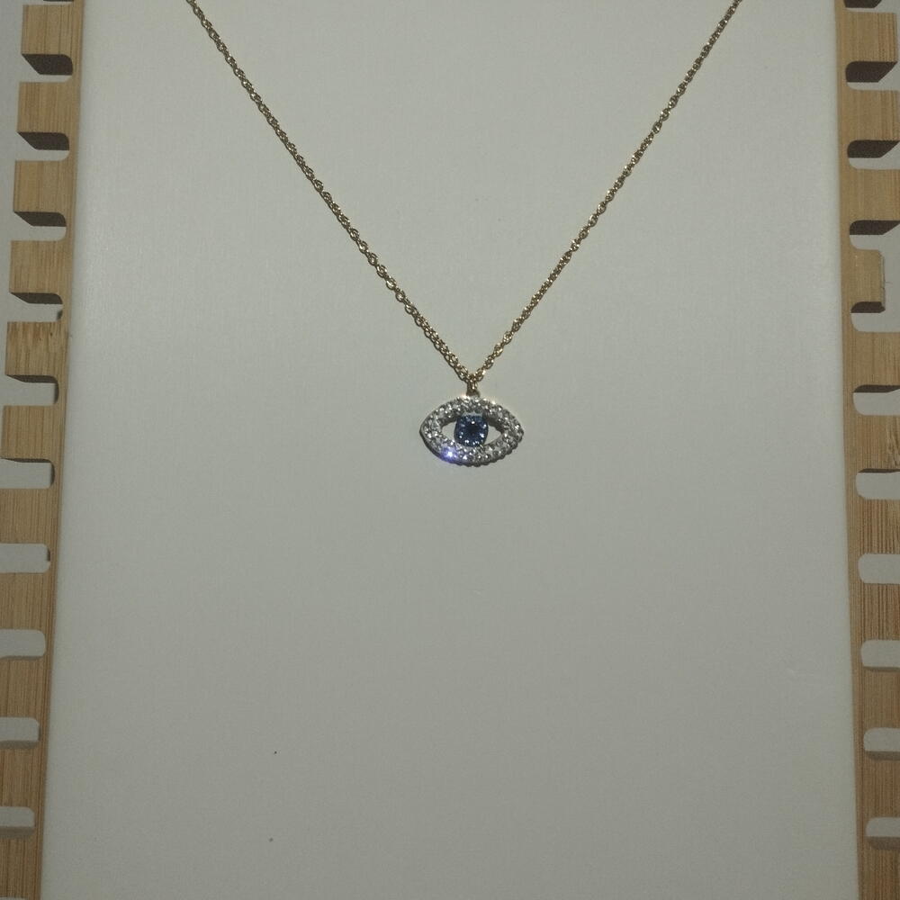 Colar Elegante Com Pendente Destacável, 3 Cores e Dimensões de Cristais, com Malha Trabalhada Em Argolinhas, 1 Fecho, Aço Inoxidável Dourada