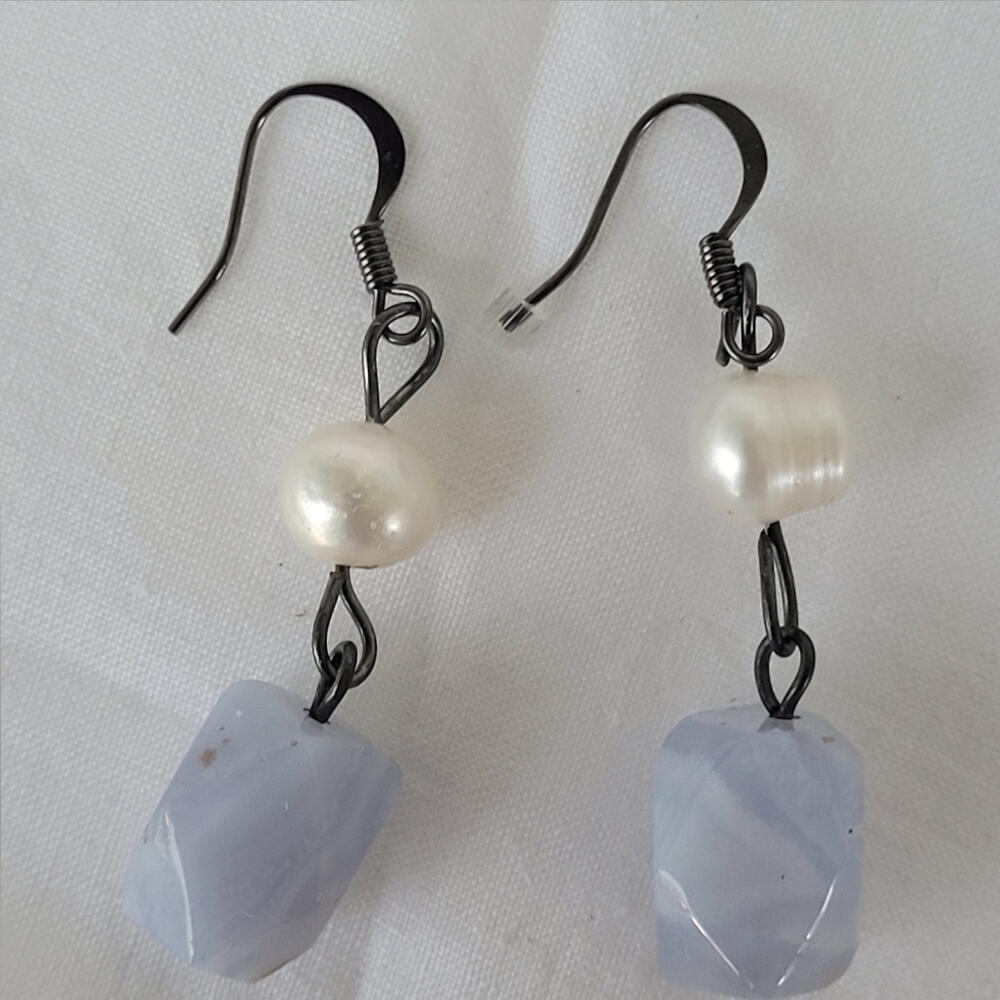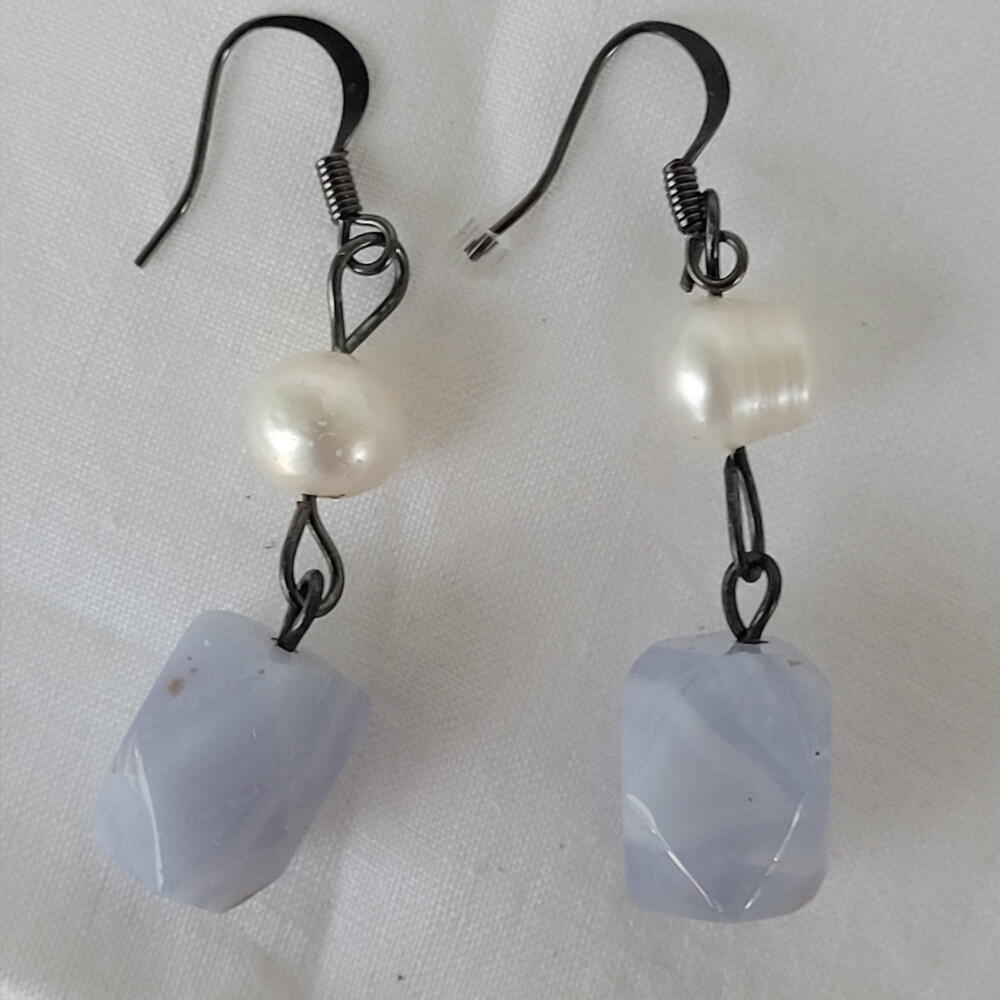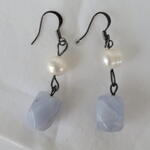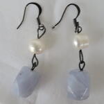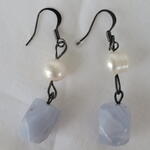 Dangling Blue lace, fresh water pearls earing