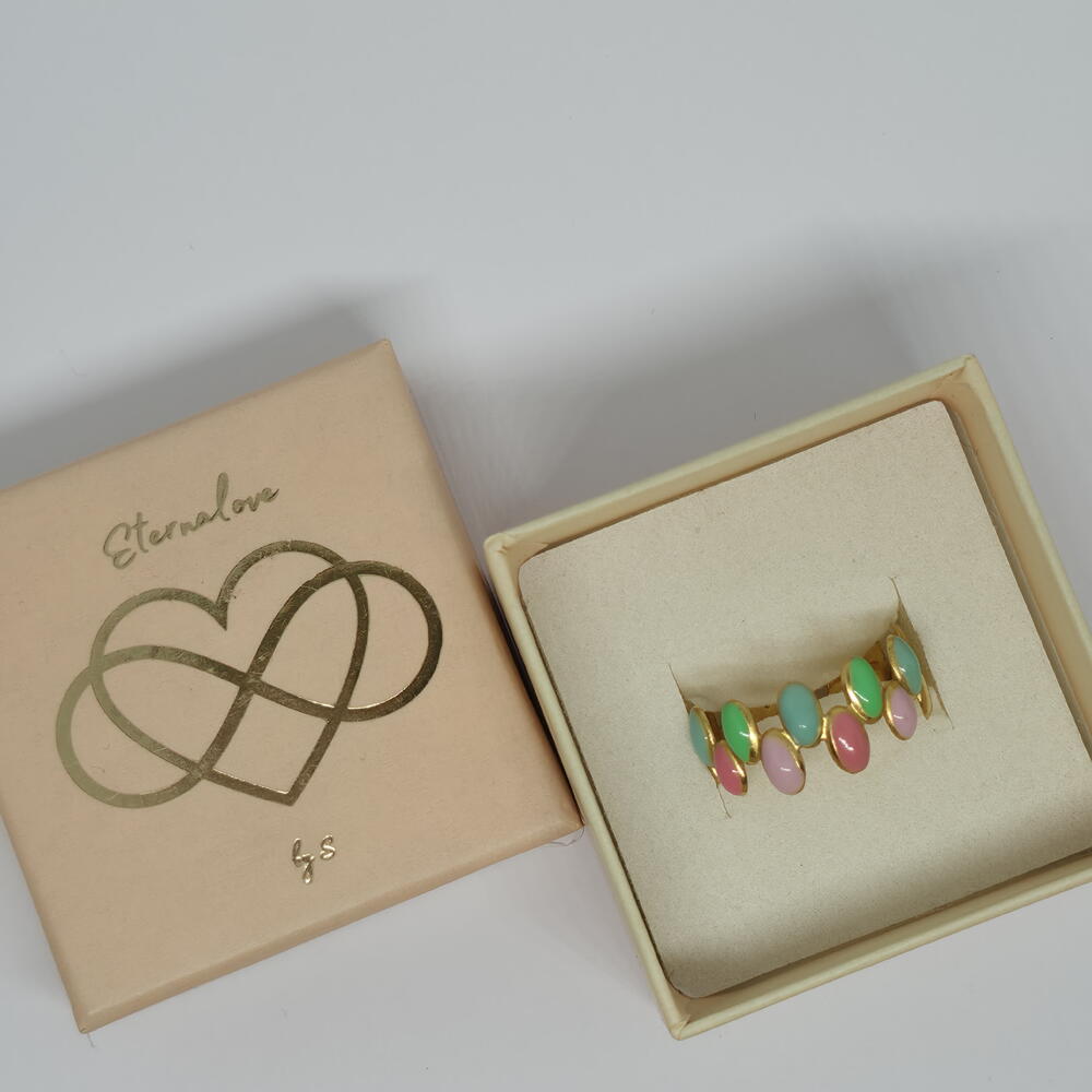 A joyful statement ring designed to add color and personality to your look. Featuring soft pastel tones and a bold gold base, this ring is all about confidence, creativity, and feel-good energy. The adjustable ring ensures a comfortable fit, making it perfect for everyday wear or playful styling. Carefully packed in an elegant gift box, ready to be worn or gifted. ✨