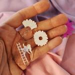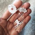 Earrings with transparent elements in shape of cat. Size of cat 30 x 50 mm, flowers 22 x 25 mm, 17 x 22 mm.
