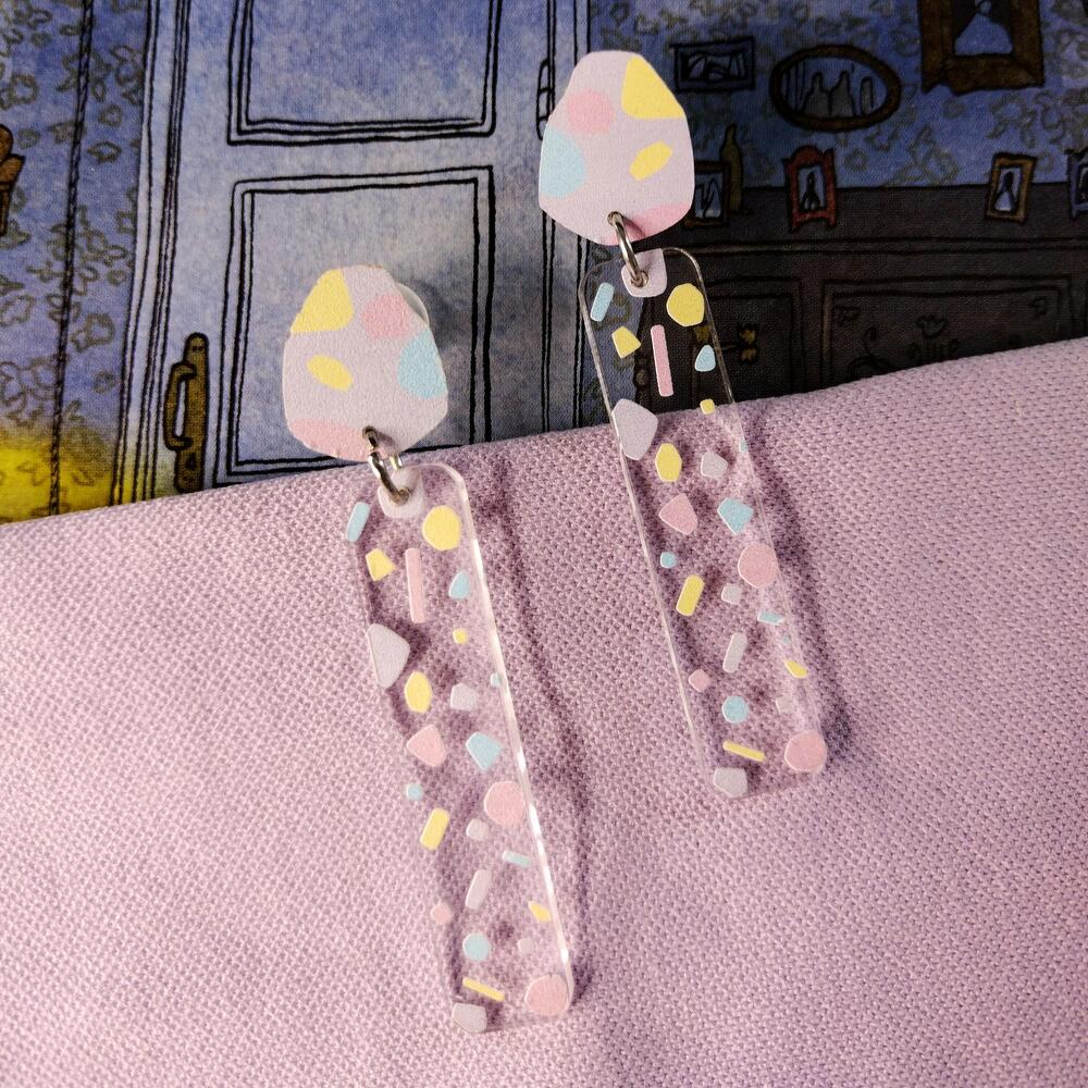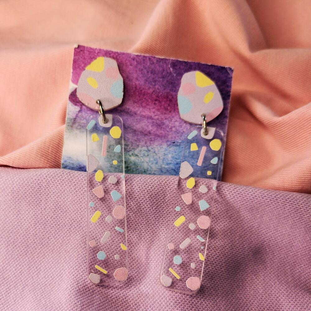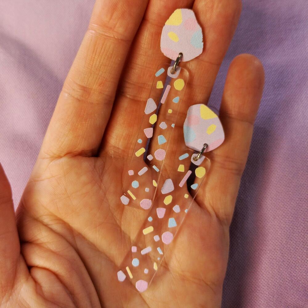 Earrings in pastel tones, with waterproof print. Size of each 15x70 mm without ear hook, ear hook material stainless steel