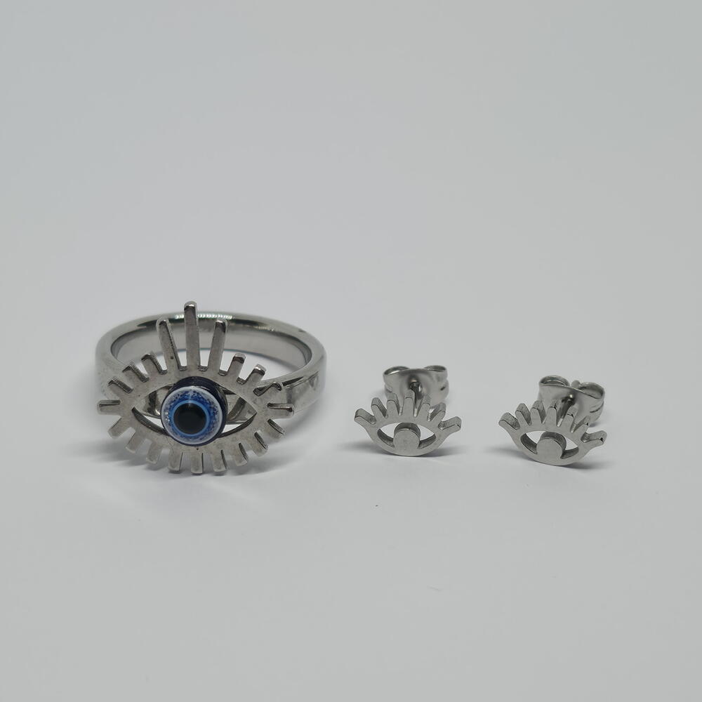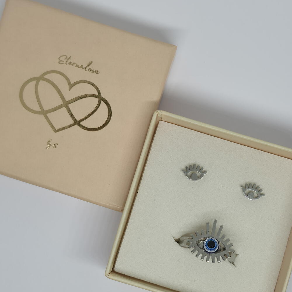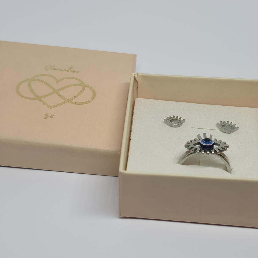A powerful jewelry set featuring the iconic evil eye symbol, designed to represent protection and inner strength. The bold ring and matching earrings create a striking yet meaningful look, perfect for those who love jewelry with intention. The adjustable ring ensures a comfortable fit, making this set ideal for everyday wear or thoughtful gifting. Carefully packed in an elegant gift box, ready to be worn or gifted. ✨