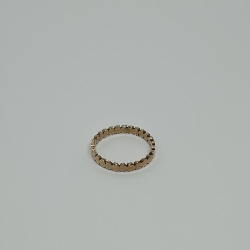 A delicate gold band made of tiny heart shapes. Minimal, romantic, and easy to wear every day.