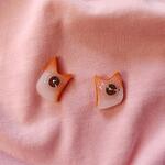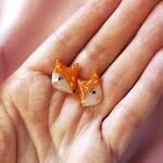 Handmade studs earrings in shape of cute red fox with gold inclusions. Made of polymer clay, hand painted and covered with epoxy resin.