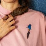 Wooden pin with engraving, sophisticated and elegant flower