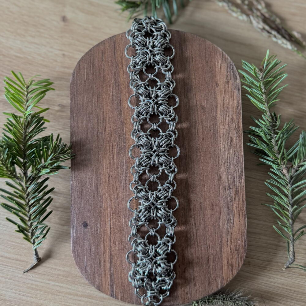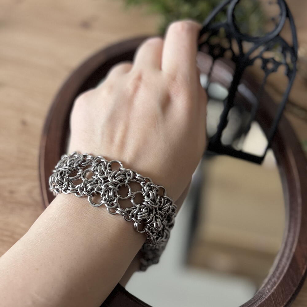 Ручно рађена наруквица од нерђајућег челика. Могуће је прилагодити је да буде дужа/краћа ради ваше удобности. Тешка и чврста, ваша модерна верижна оклопна оклопка која ће вас заштитити и одушевити.