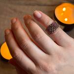 Handmade beaded ring. It attracts attention, but it remains an unobtrusive, delicate accent in your image. Inner circumference 46 mm