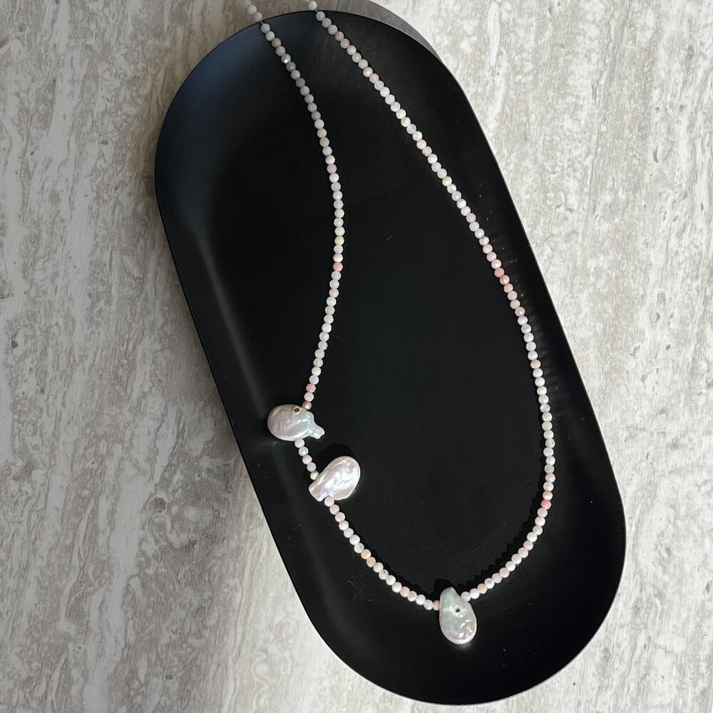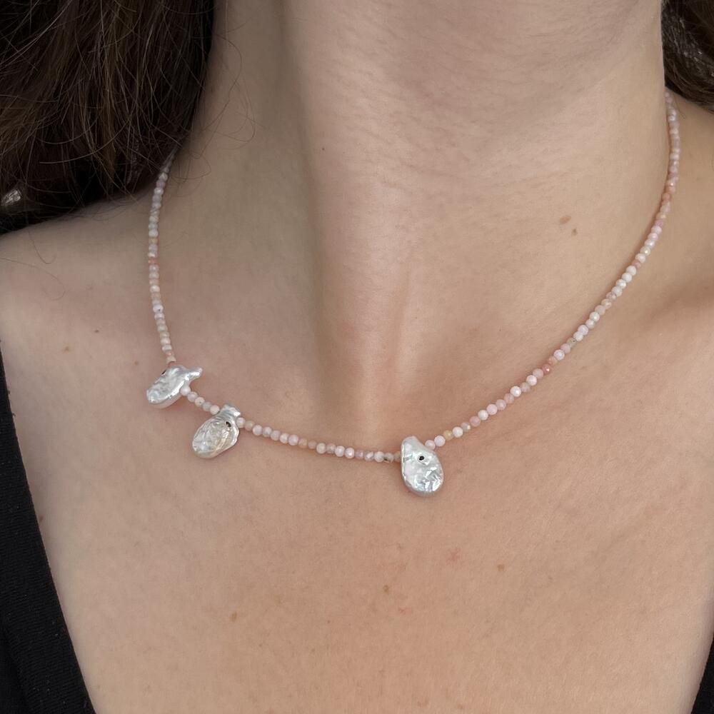 Stylish minimalistic choker made of natural stone agat and river pearl.