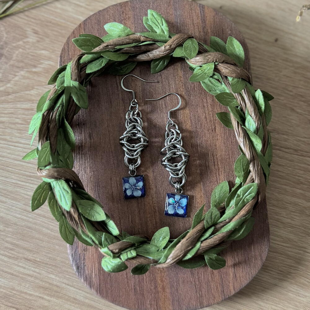 Минђуше од нерђајућег челика са цветним привесцима обложеним УВ смолом.