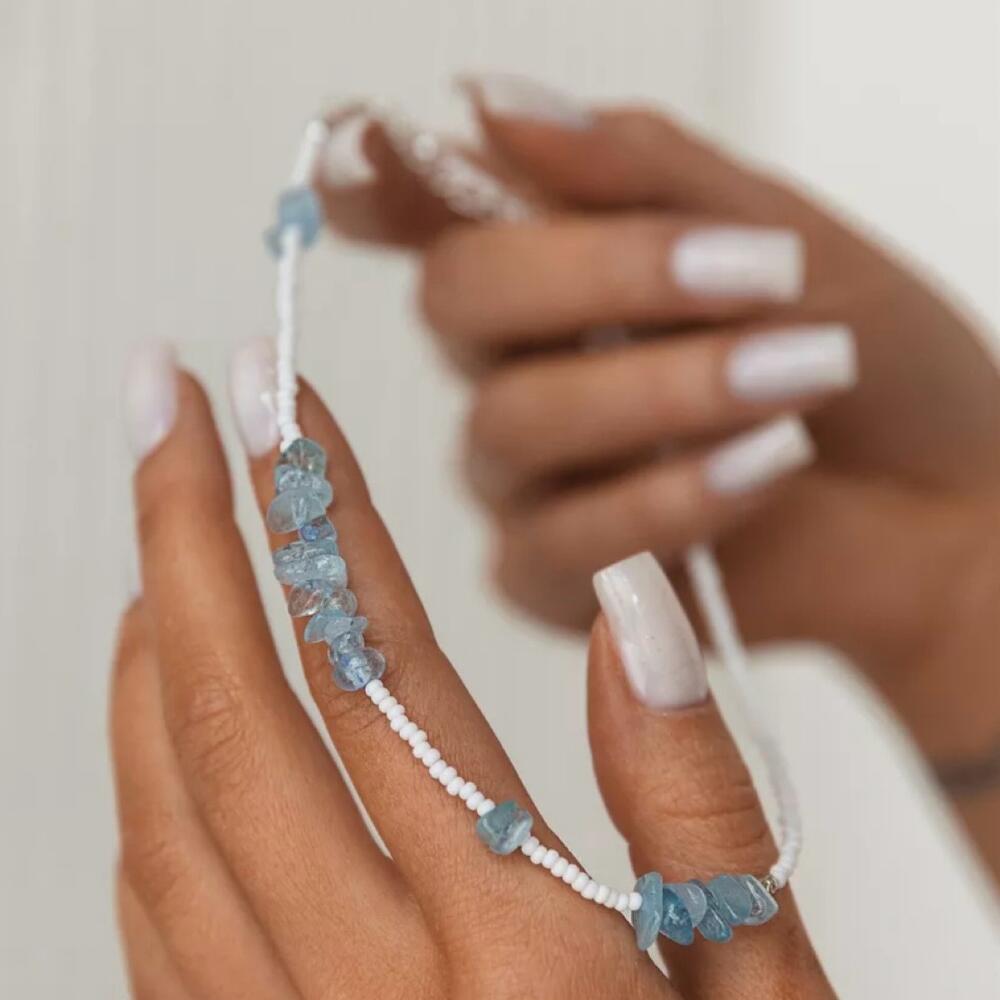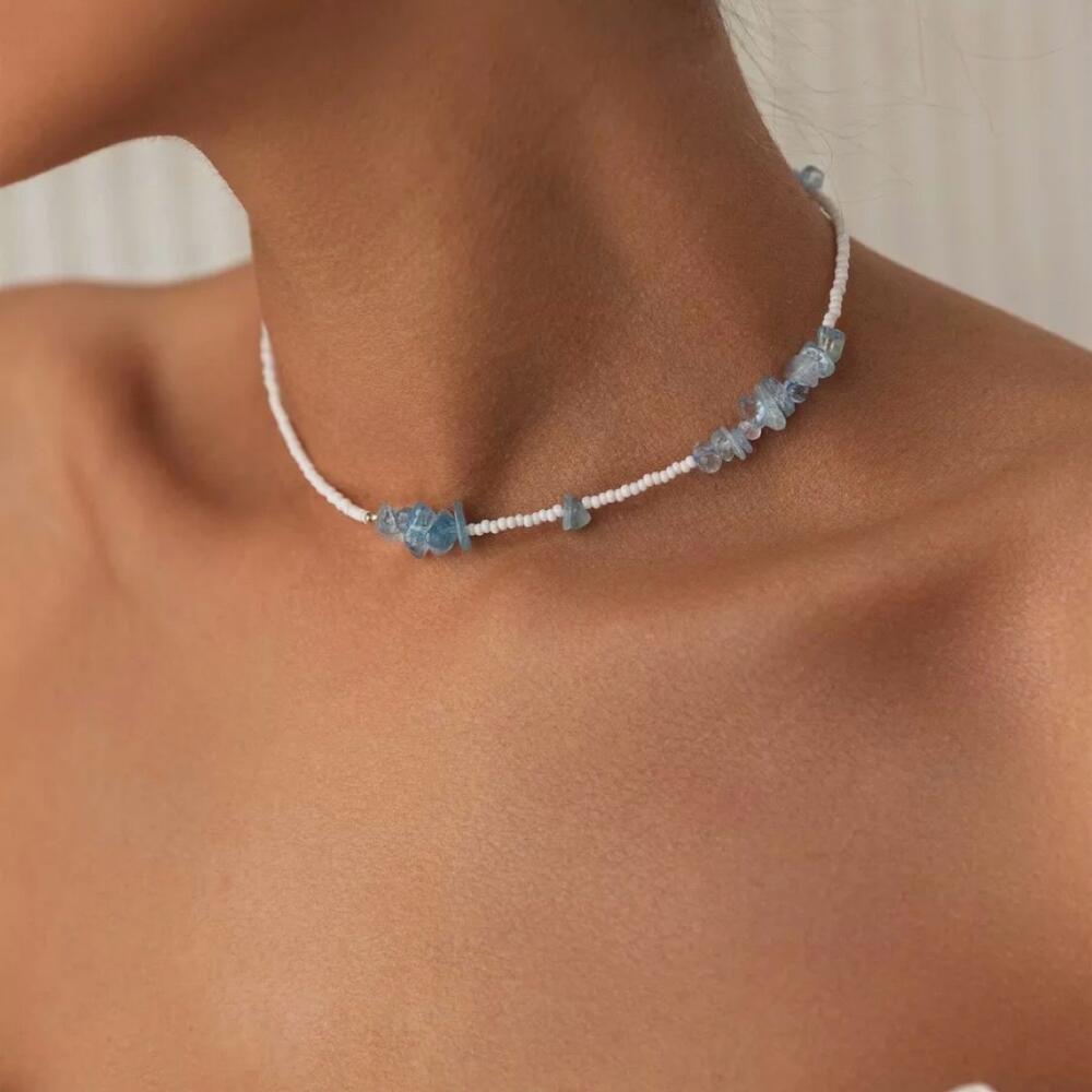 This choker made of high-quality Czech beads and natural aquamarine quartz stone will make a wonderful gift for yourself and your loved ones.