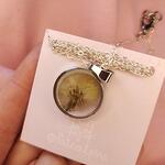 Transparent pendant with real flowers in epoxy resin, diameter 17 mm. Made in a single copy. Material is stainless steel. The chain length is from 46 to 50 cm. You can choose the chain at your discretion