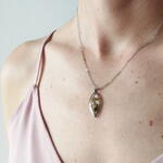 A pendant with real flowers in epoxy resin, made in a single copy. The metal material is stainless steel. Size is 12 mm x 25 mm. The chain length is from 46 to 50 cm. You can choose the chain at your discretion