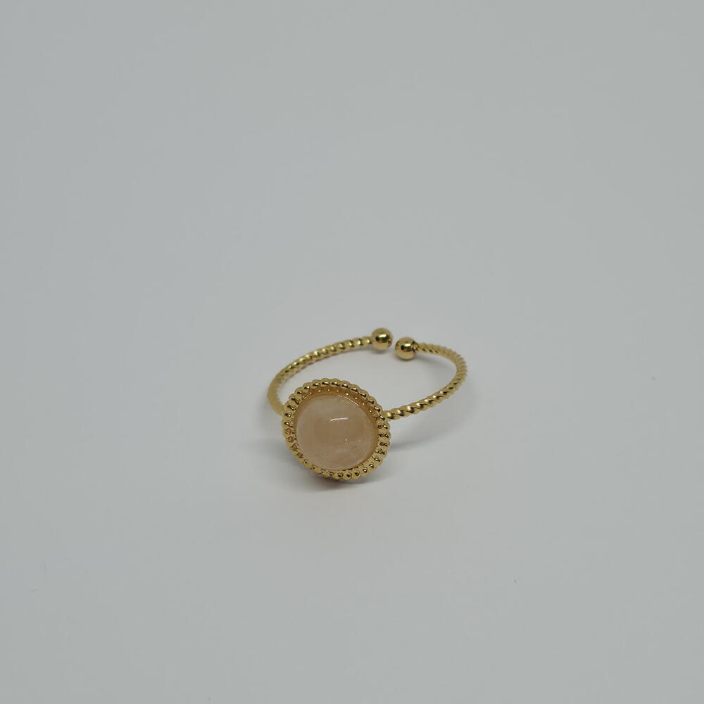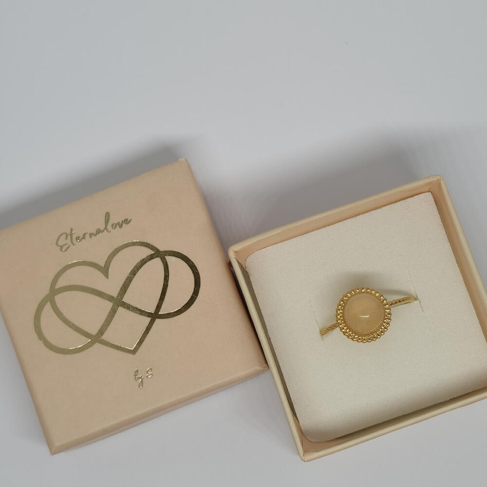 A delicate ring featuring a soft rose-toned stone framed with subtle golden details. Designed to feel light on the hand while adding a gentle glow to any outfit. Perfect for everyday wear, layering with other rings, or as a thoughtful gift. The adjustable band makes it comfortable and easy to fit. Delivered in an elegant Eternalove gift box. ✨
