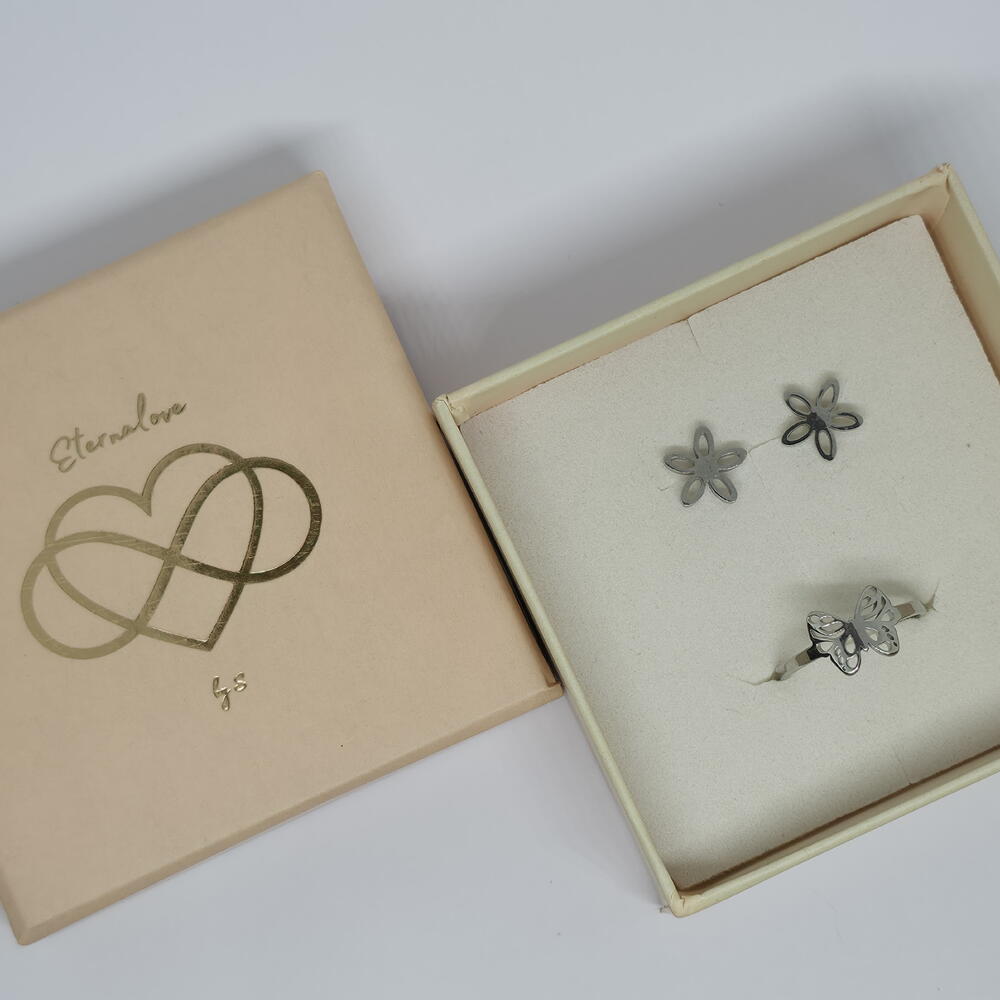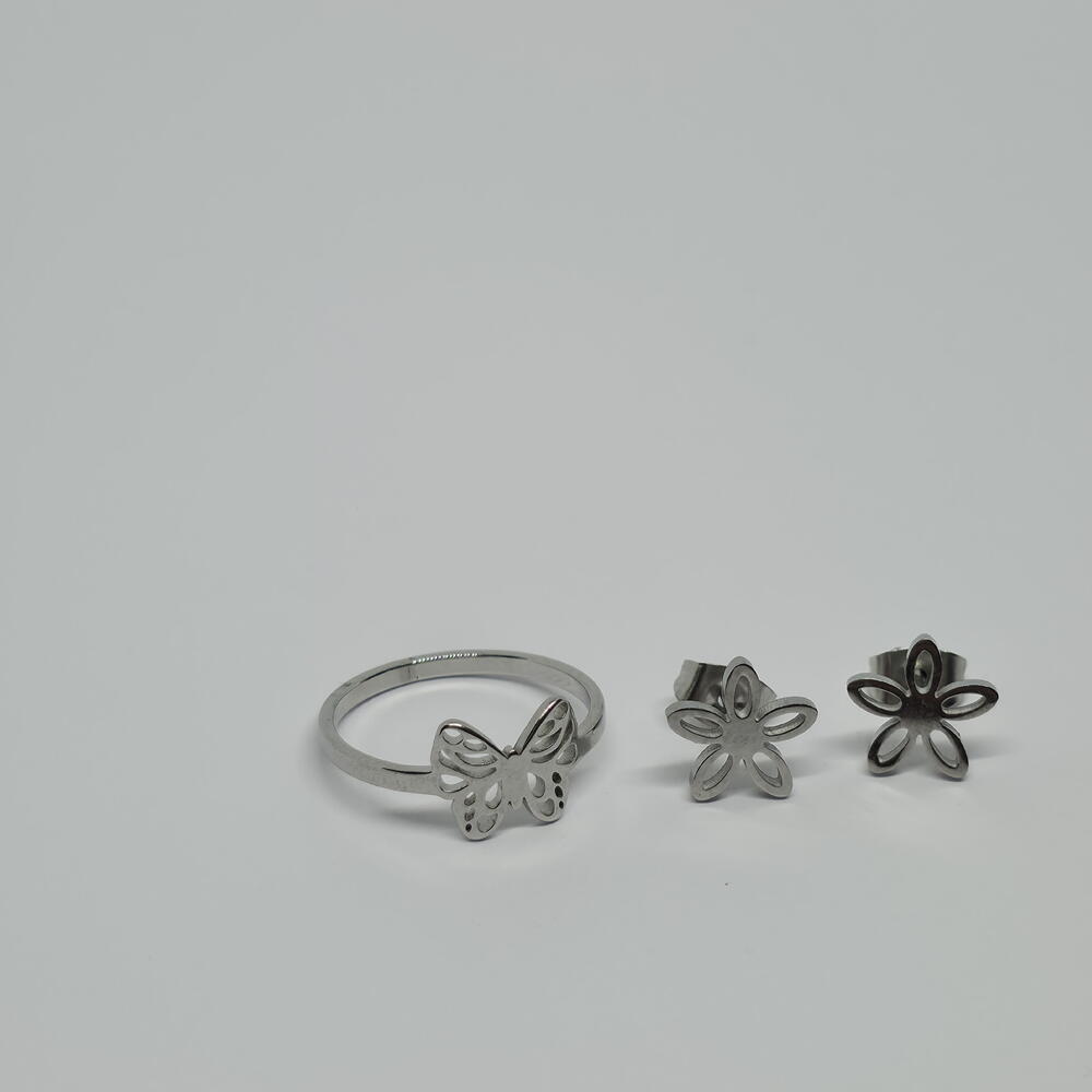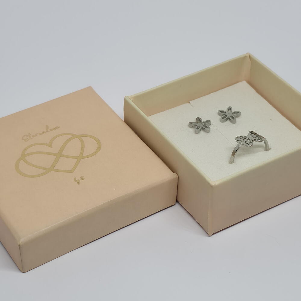 A delicate silver jewelry set inspired by soft floral shapes and everyday elegance. Minimal flower earrings paired with a matching ring create a timeless and feminine look. The adjustable ring ensures a comfortable fit, making this set perfect for daily wear or effortless gifting. Carefully packed in an elegant gift box, ready to be worn or gifted. ✨