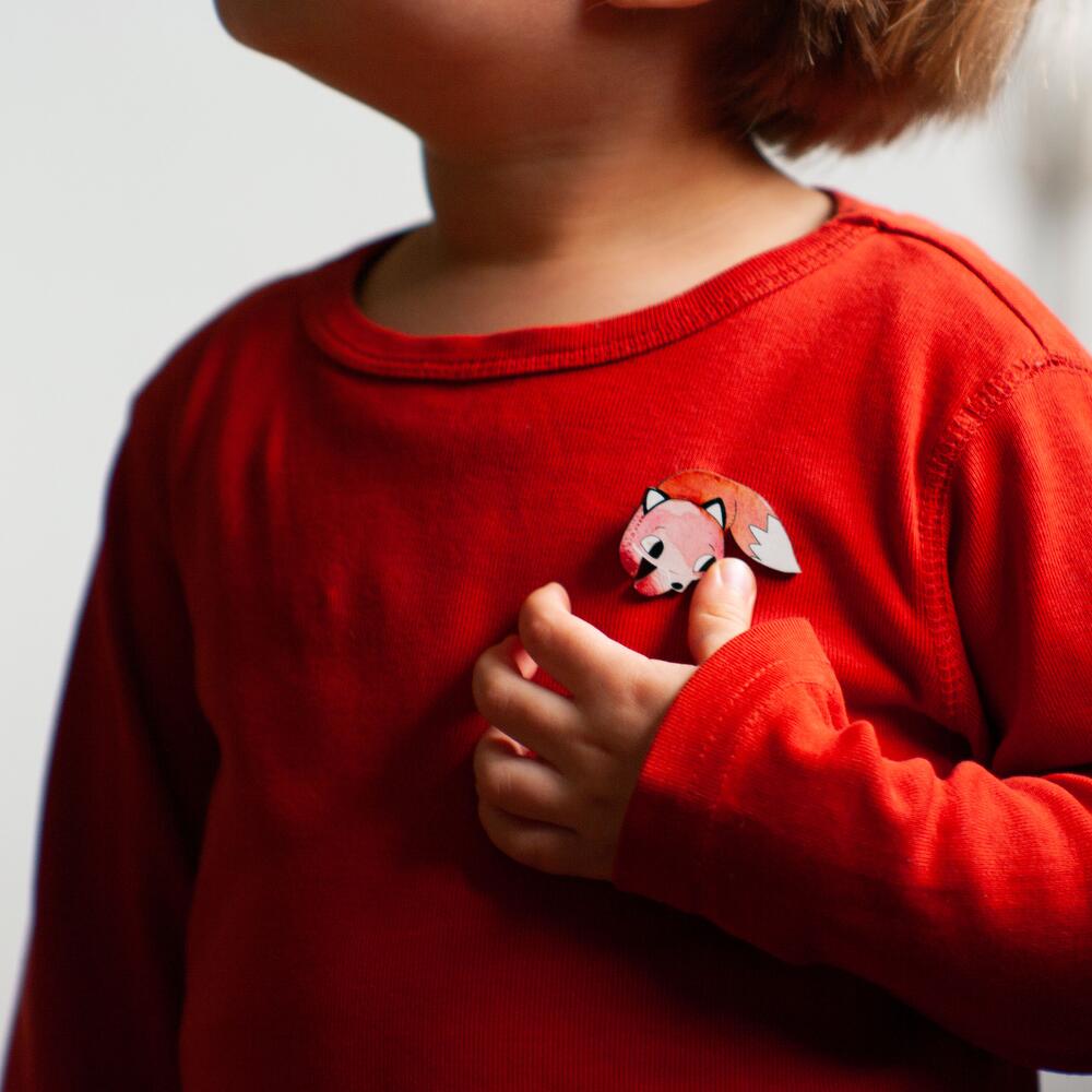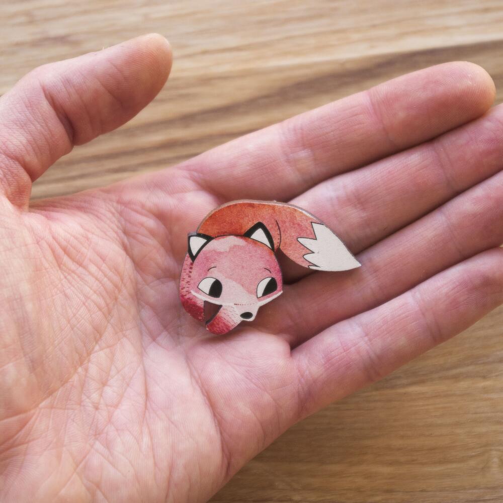 Pin in shape of red fox, size 4,4 x 3 cm, made with waterproof print