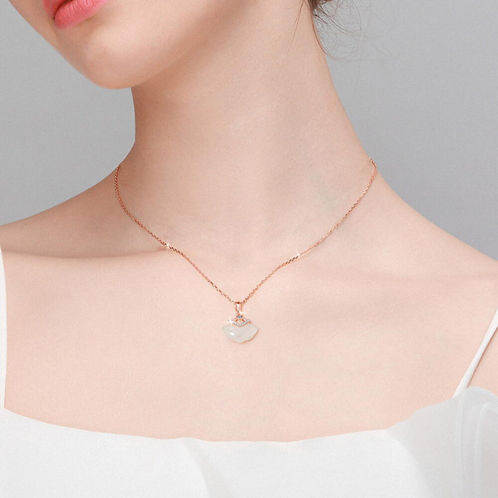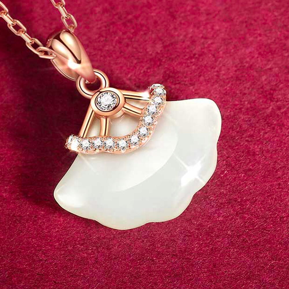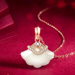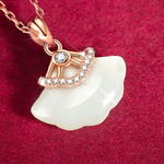 Under the polishing of nature Hetian jade has an innate spiritual texture. Hetian jade made of three-dimensional sculpture is warm and moist. Reasonable layout, smooth lines, skilled carving Its ethereal and pure characteristics complement the realm of Bodhi. Express the beautiful meaning of auspiciousness, peace and peace Necklace parameters: Brand: T400 Product Name: Hetian Jade Small Fan Necklace Color: Rose gold Chain length: about 40+3cm (extended chain) Main stone material: Hetian jade, synthetic cubic zirconia Metal material: S925 silver Weight: about 3.03g