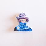 Brooch in shape of famous artist Van Gogh in a mask with his masterpiece Starry night