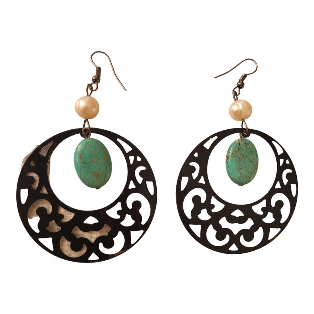 Basic metal Black metal lace Turquoise color stone
