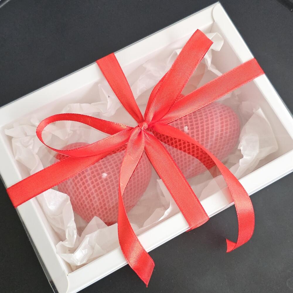 Box size 18×12.5×6cm. The width of the hearts is +/- 7.5cm.