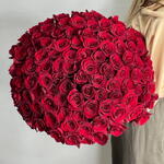 Қызыл раушан - 101 дана Сатин таспа - 1 дана
