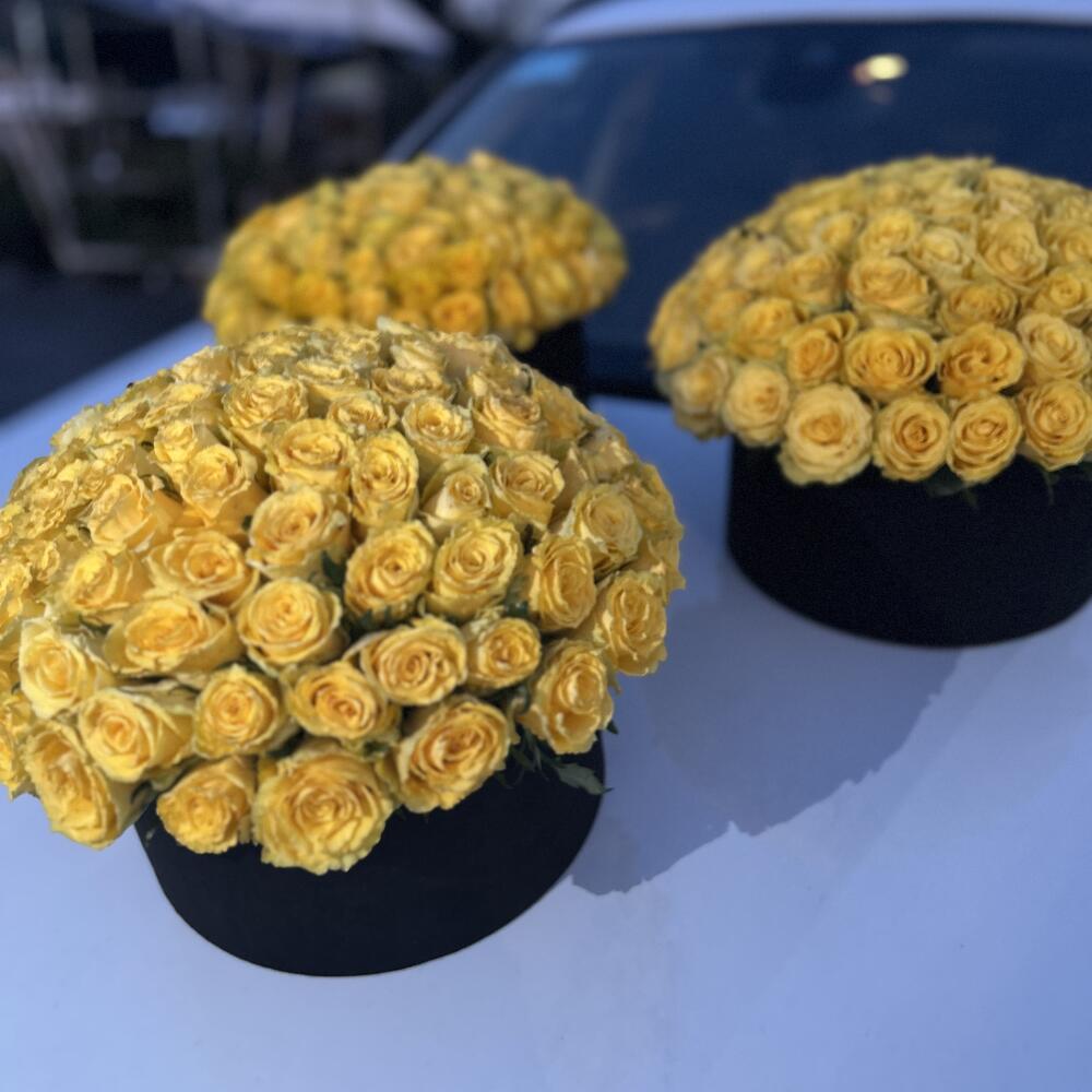 When you want to surprise your loved one, you are never sure which gift would be right. A gift that speaks more than a thousand words, looks gorgeous and knocks you off your feet a box of 303 yellow roses. (roses can be in any color you wish: white, pink, orange, yellow, violet, mix, etc) Note: The design of the bouquet can be changed to a similar one if the required materials isnt available