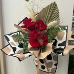Indulge in the grandeur of ravishing red roses. Each rose, carefully selected for its beauty and elegance. This bouquet makes a bold and passionate statement, expressing deep affection and admiration. Note: The design of the bouquet can be changed to a similar one if the required material is not available