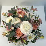 Our exclusive flower box combines the passionate rose with the enchanting fresh tulip, lisianthus and soothing chamomile.