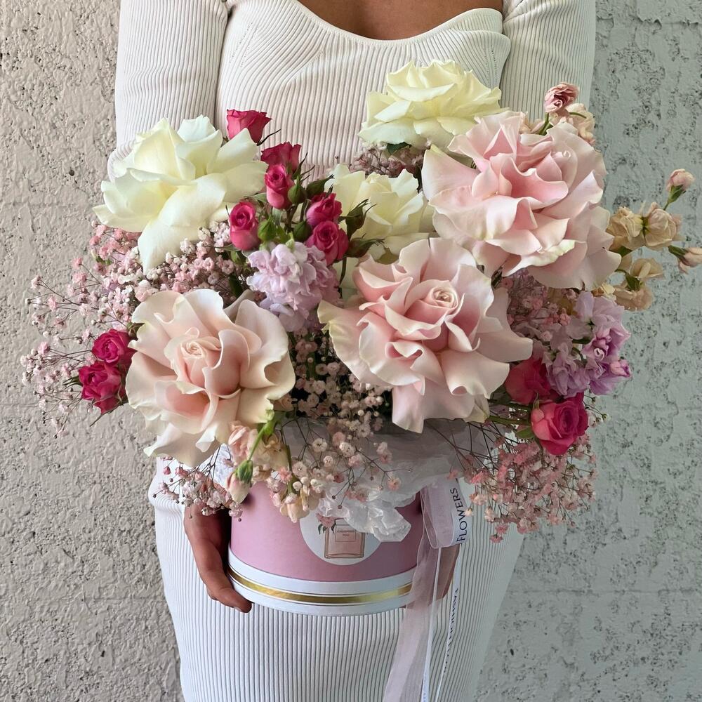Гипсофила - 10 дана Маттиола - 10 дана Бұта раушаны - 5 дана Раушан - 10 дана